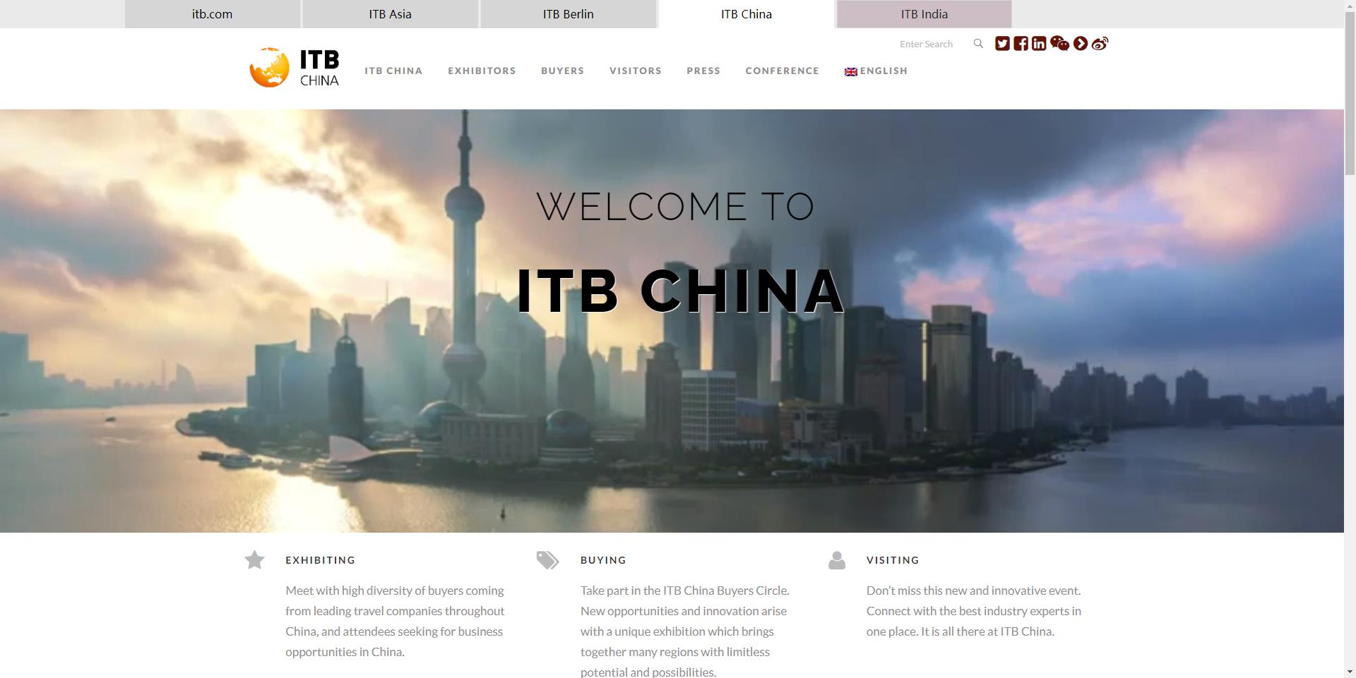 ITB China是国内规模最大的B2B旅游展会,这项为期三天的盛会独特聚焦于中国旅游市场。本项目为其官方网站。