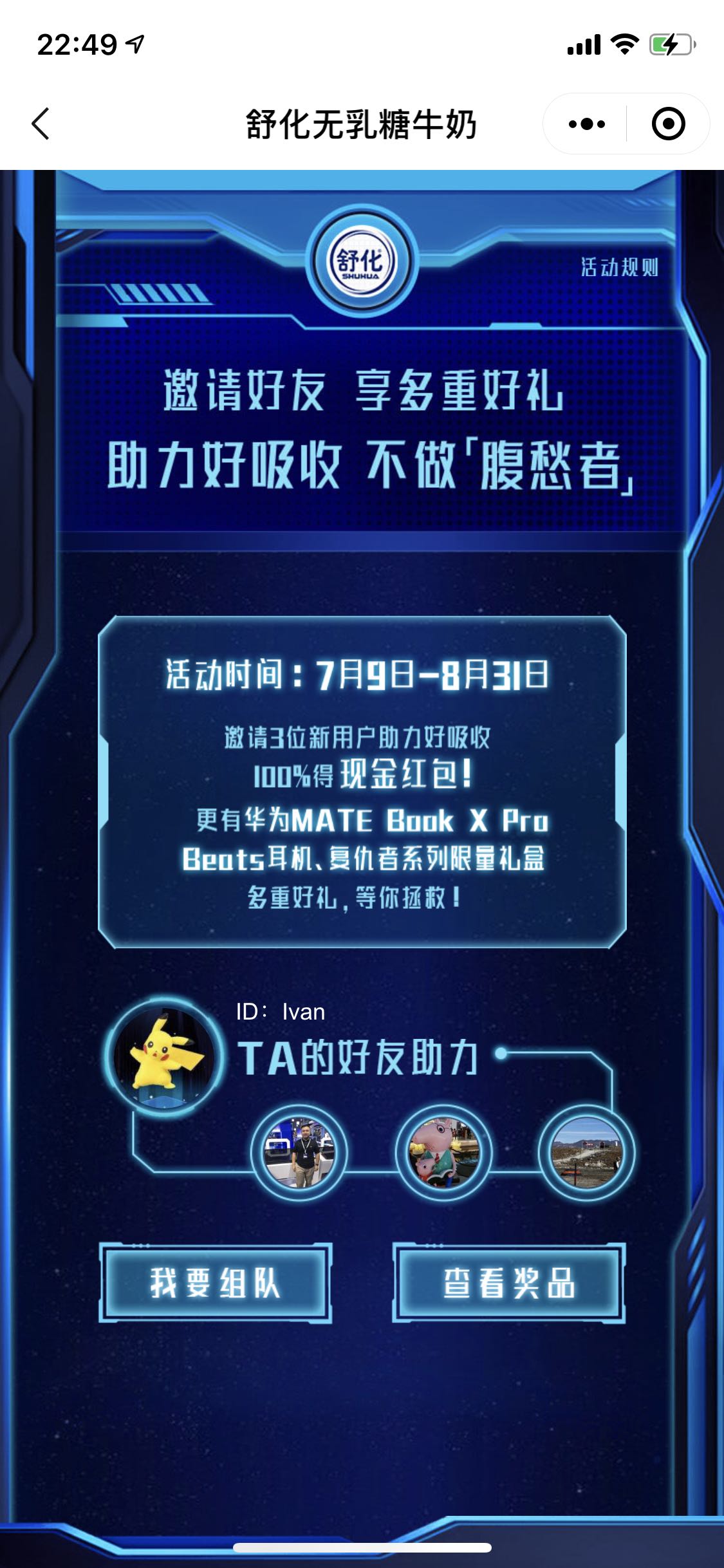 本项目为180广告创意策划,本公司开发的舒化奶活动小程序。