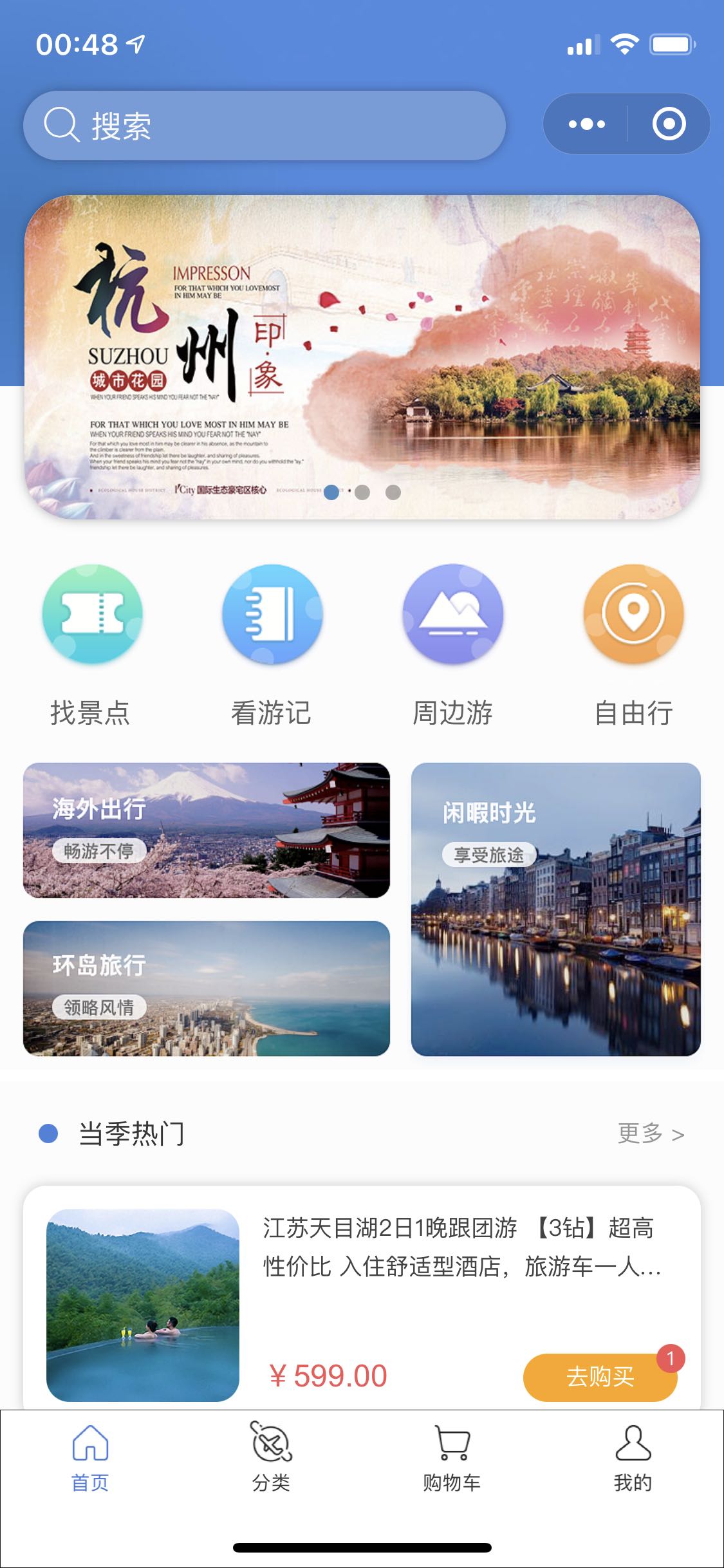 东航国旅是国内知名旅行社,该小程序为本公司为其开发的官方小程序,可在线预定旅游线路,行程安排等。